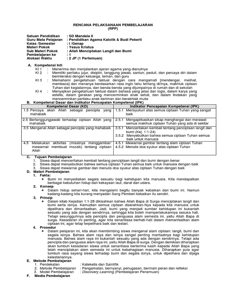 Perangkat pembelajaran k13 sd/mi ialah kebutuhan yang harus dipunyai oleh tiap guru ataupun tenaga sebab begitu berartinya kepemilikian perangkat pembelajaran k13 sd/mi ini hingga kami berinisiatif buat perangkat k13 revisi 2020 mapel agama khusus mi ( rpp format 1 lembar ). Rpp agama katolik sd kelas 1 6 kurikulum 2013. Prangkat pembelajaran agama katolik 1 lembar sd perangkat pembelajaran kurikulum 2013 sd mi from katulis pa katolik dan budi pekerti kelas semester : Prangkat pembelajaran agama katolik 1 lembar sd rpp bahasa inggris kelas 7 semester 1 kurikulum 2013. Prangkat pembelajaran agama katolik 1 lembar sd :